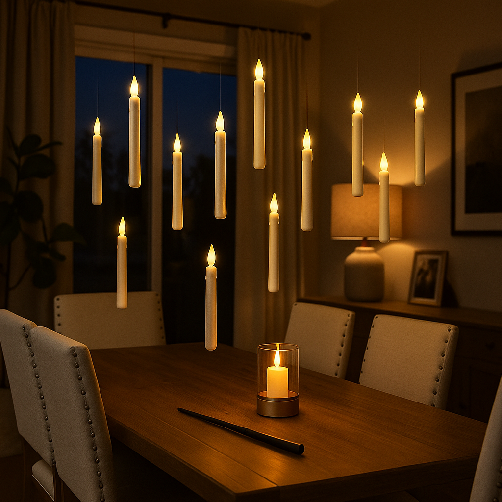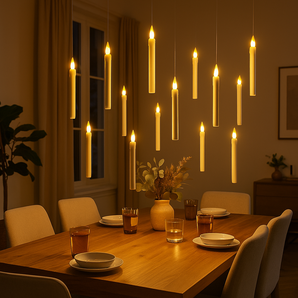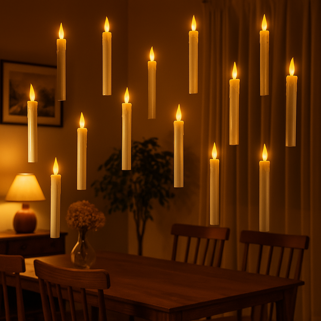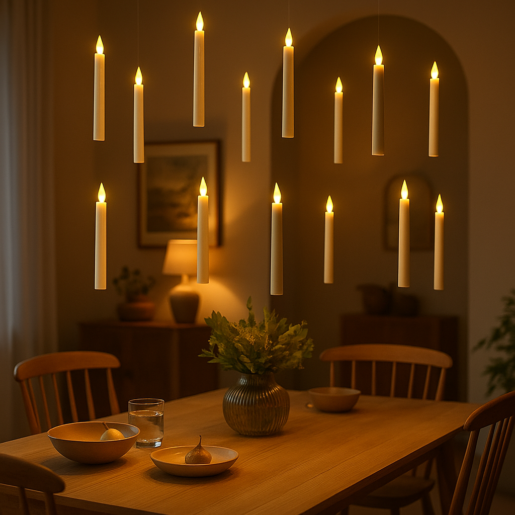 Whether you’re hosting a dinner party, celebrating a special occasion, or simply adding a cozy touch to your home, MagiaFlame™ delivers elegance and wonder in every detail. The invisible hanging design makes the candles appear to float effortlessly in the air, creating a truly spellbinding effect.